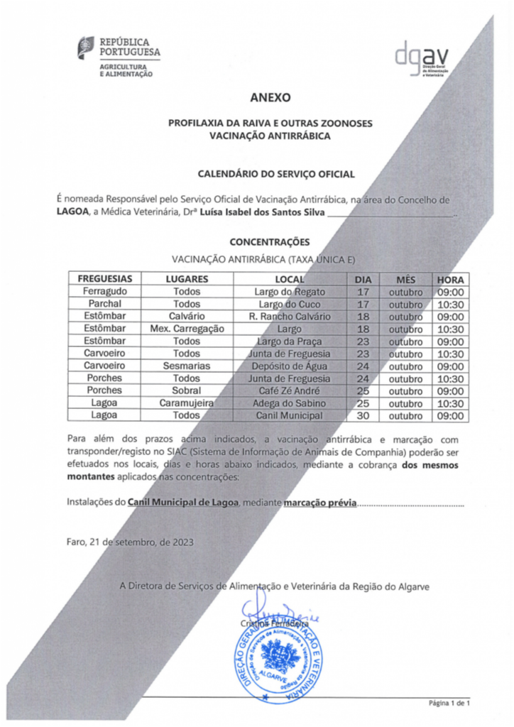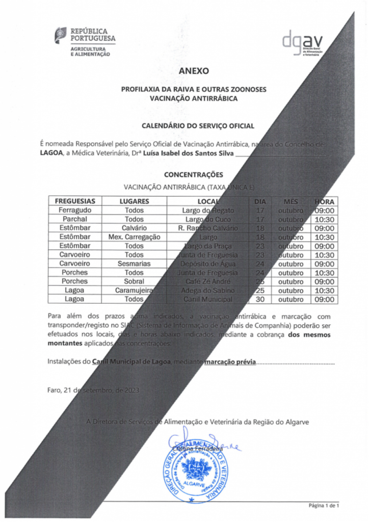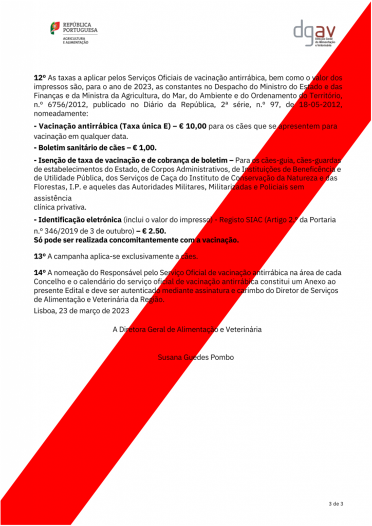 Vacinação Antirrábica e de Controlo de Outras Zoonoses (CVAR) em 2023